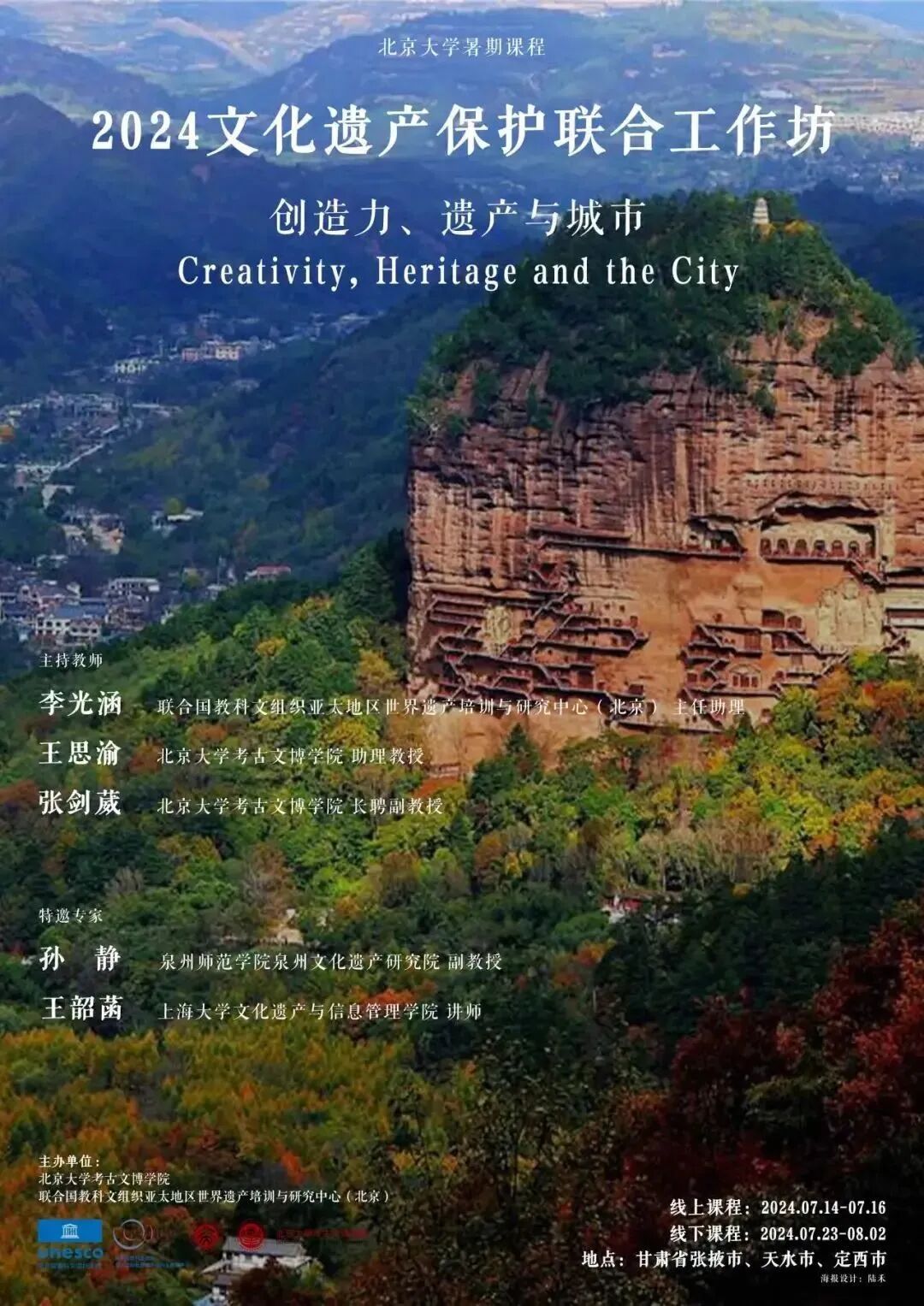 北京大学考古文博学院、联合国教科文组织亚太地区世界遗产培训与研究中心(北京)和北京大学公众考古与艺术中心联合主办2024文化遗产保护联合工作坊北京大学暑期课程。本次工作坊采取线上课程和线下调研相结合的方式。