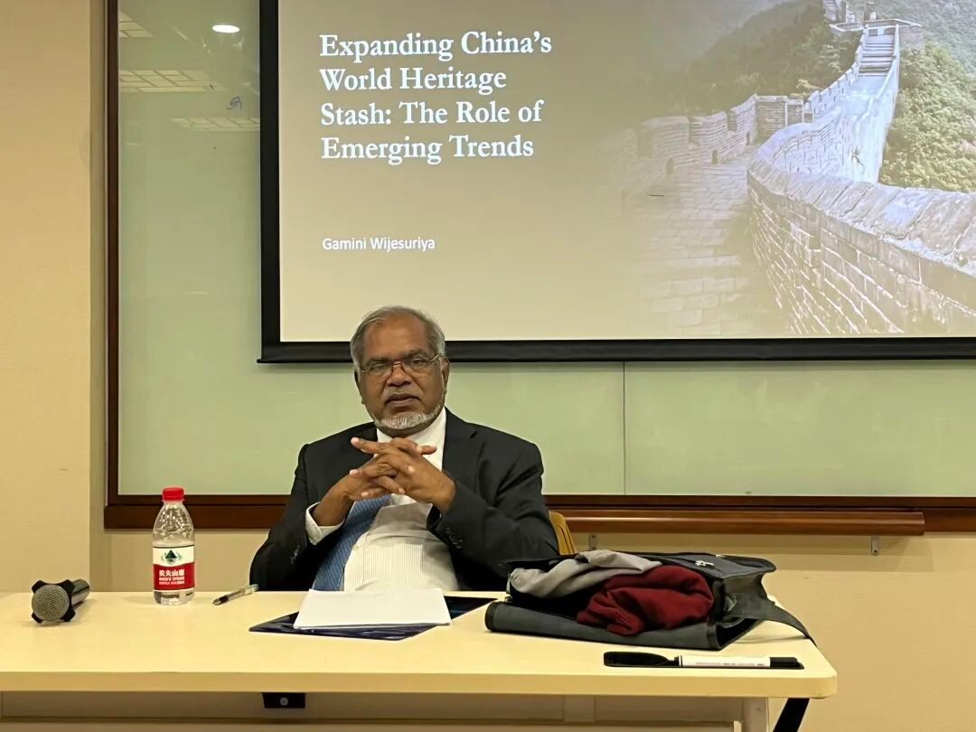 2024年10月25日,联合国教科文组织世界遗产培训与研究中心(北京)与北京大学考古文博学院在北京大学联合举办题为“扩展中国的世界遗产库:新兴趋势的作用”的讲座。本次讲座由联合国教科文组织亚太地区世界遗产培训与研究中心(上海)特聘顾问伽米尼·维杰苏里亚博士(Dr. Gamini Wijesuriya)主讲。