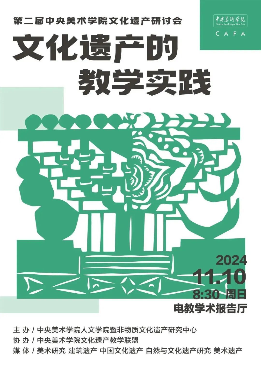2024年11月10日第二届中央美术学院文化遗产学科研讨会“文化遗产的教学实践”于北京中央美术学院召开。此研讨会始于2023年,由人文学院暨非物质文化遗产研究中心主办,旨在促进文化遗产学科及学术共同体建设。本次会议共有23位涵盖文物保护、建筑遗产及非物质文化遗产的专家学者参与,北京中心执行主任李光涵博士出席会议,并于“国际合作”单元作“文化遗产的跨学科教学实验与阐释:以WHITRAP(北京)的文化遗产联合工作坊为例”的主题发言。