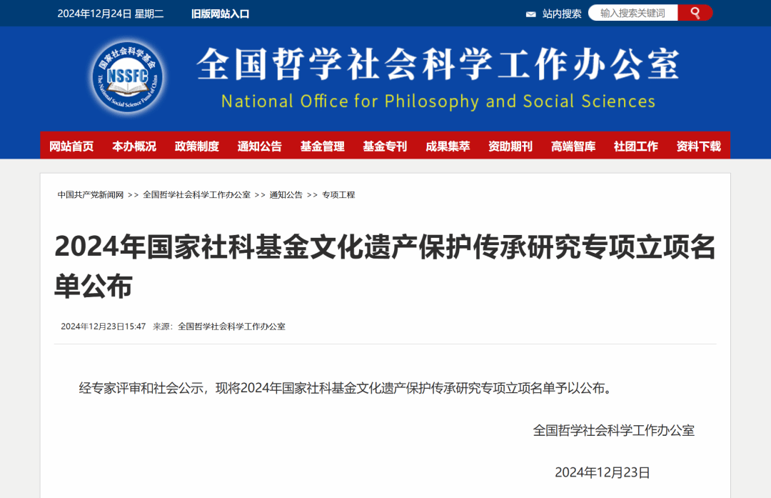 2024年国家社科基金文化遗产保护传承研究专项立项