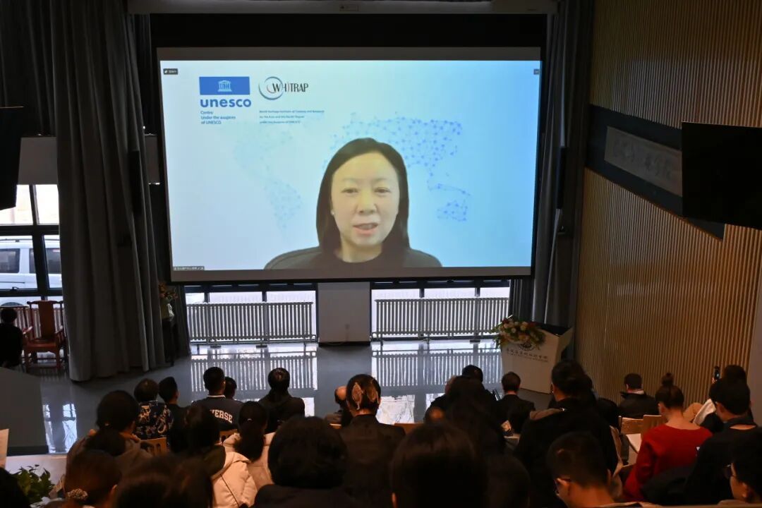 两所中学合作伙伴也分享了两项众绘计划的衍生活动。北京四中国际校区的张婧祎老师为大家做了《大运河主题无围墙课程实践与思考》的分享,详细介绍在国际学校开设的无围墙文化遗产课程、组织学生策划大运河主题展览的实践过程,分享开展青少年文化遗产教育的相关思考。