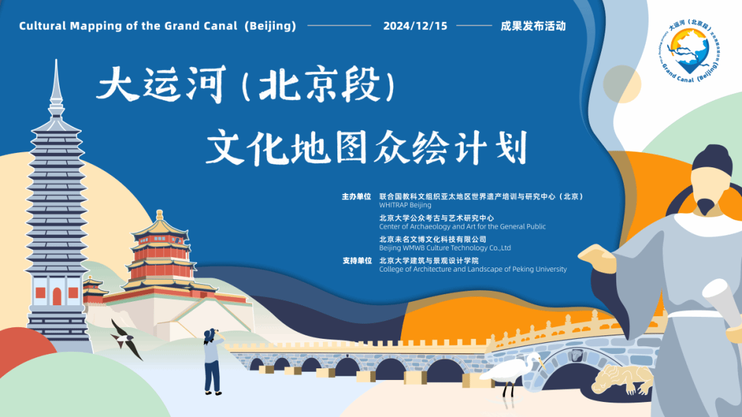 2024年12月15日,大运河(北京段)文化地图众绘计划成果发布活动在北京大学建筑与景观设计学院一楼报告厅顺利举行。本次活动由联合国教科文组织亚太地区世界遗产培训与研究中心北京分中心(WHITRAP北京中心)、北京大学公众考古与艺术研究中心、北京未名文博文化科技有限公司联合主办,北京大学建筑与景观设计学院支持。活动分为成果共享和参与分享两个环节,北京大学考古文博学院研究员、北京大学公众考古与艺术研究中心主任王思渝主持活动。