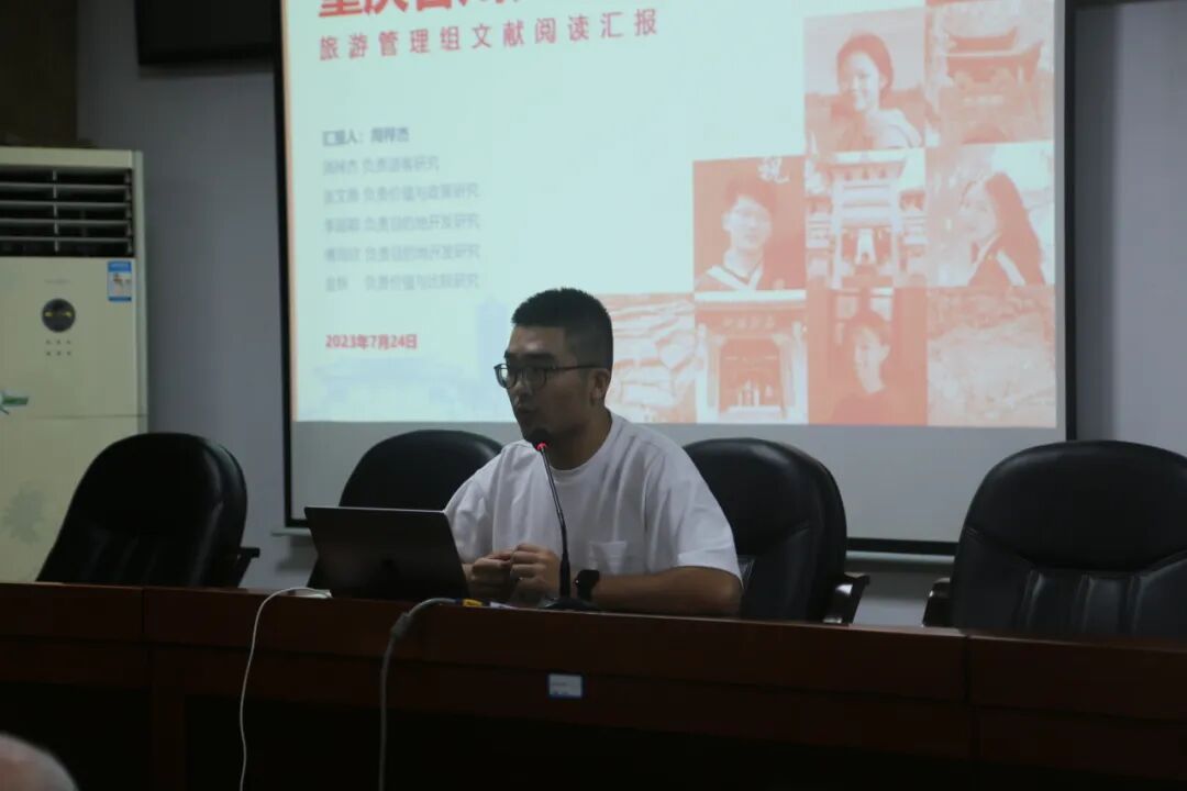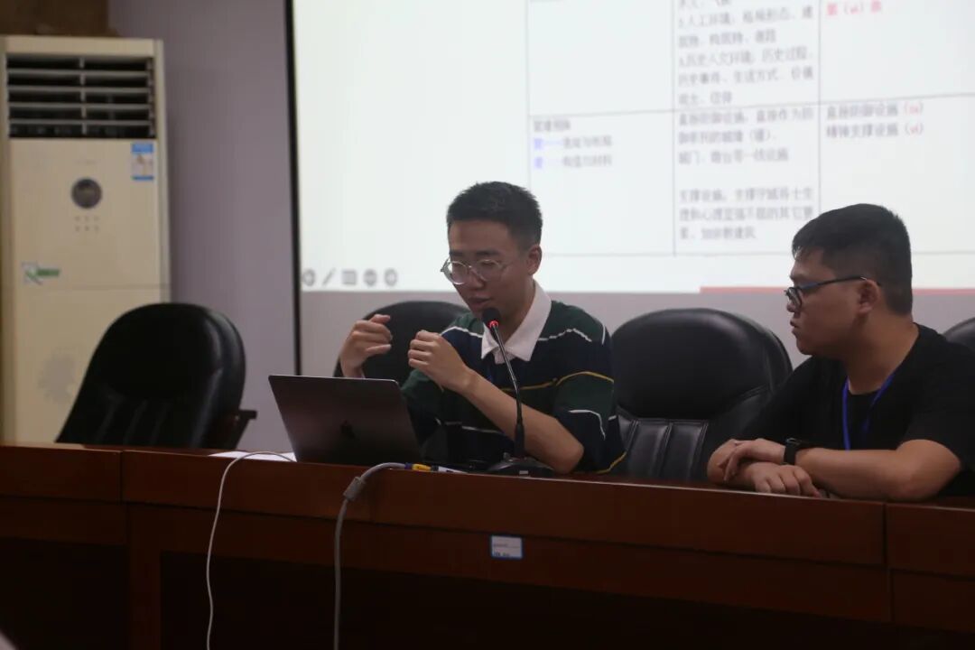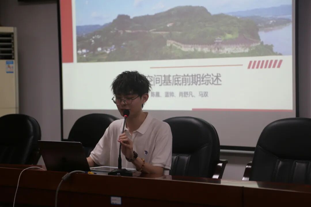 孙杨炀同学代表空间基地组,从南宋川渝防御体系、钓鱼城空间基地分析、钓鱼城空间研究意向三个方面对钓鱼城遗址的地理背景进行了介绍。冉隆皓和袁奇大可同学分别代表考古组和社区组,从历史背景、考古概况、遗产价值、展示规划等角度,对钓鱼城遗址的考古工作与社区研究进行了总结。周梓杰同学代表旅游管理组从供给和需求两方面对钓鱼城遗址的开发政策、比较价值、保护展示、游客需求等内容进行了汇报。