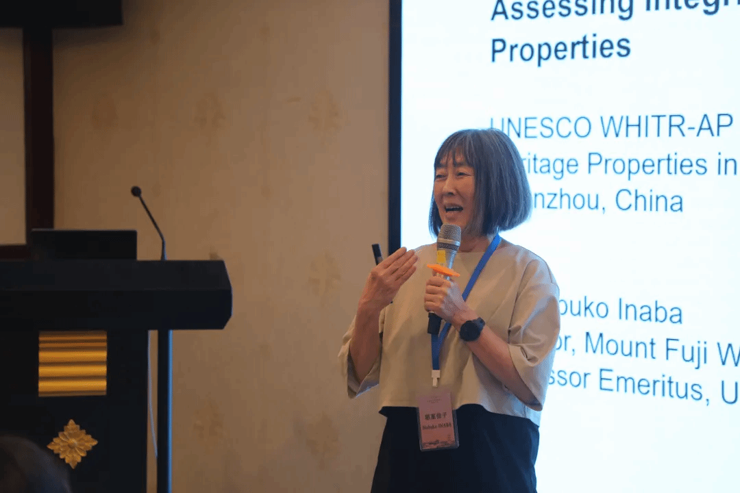 日本富士山世界遗产管理中心主任、国际文物保护与修复研究中心总干事特别顾问稻叶信子(Nobuko Inaba)的讲座围绕世界遗产的完整性(Integrity)与真实性(Authenticity)展开,梳理了二者在《操作指南》中的历史沿革、适用范围及实践挑战。以日本遗产为案例,主要回顾了从1970年代至《奈良真实性文件》、以及2005年将真实性与完整性引入文化遗产评估的过程。