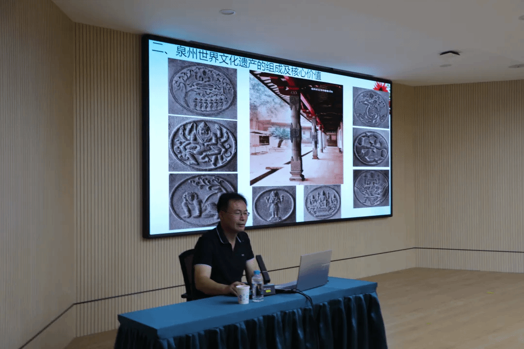 下午,工作坊全体人员前往泉州海外交通史博物馆参观并参与讲座。泉州市文化广电和旅游局二级调研员出宝阳对泉州境内的文物资源概况进行介绍,并说明了泉州系列世界遗产的组成与核心价值、遗产保护和利用情况。