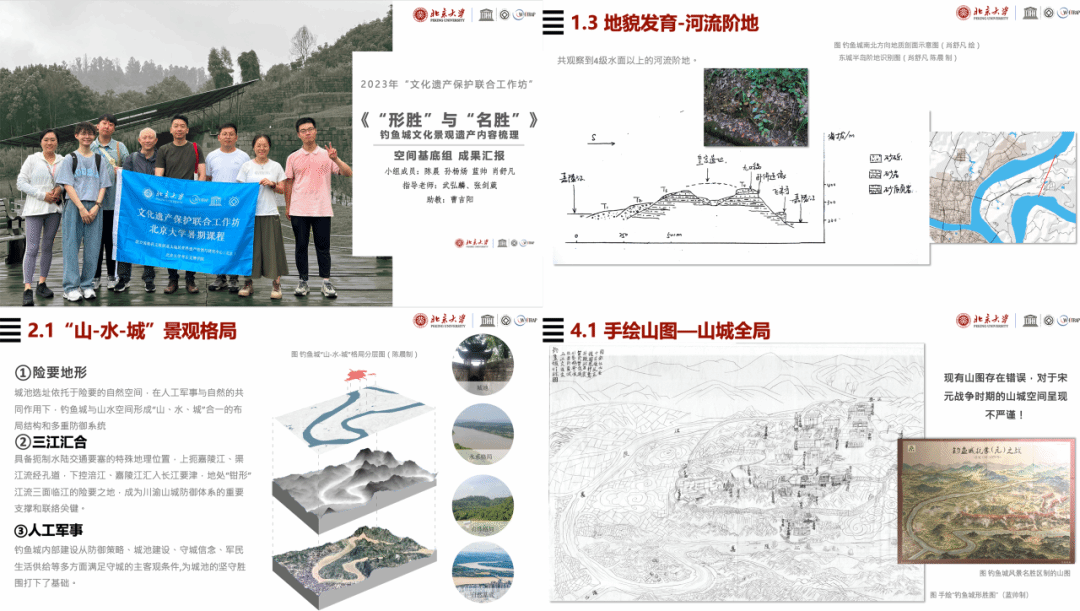 2023年8月2日,由北京大学考古文博学院、联合国教科文组织亚太地区世界遗产培训与研究北京中心(以下简称WHITRAP-Beijing)和北京大学公众考古与艺术中心联合主办的2023文化遗产保护联合工作坊北京大学暑期课程在重庆圆满结营。本次工作坊受到重庆市古迹遗址保护协会和重庆市合川区钓鱼城风景名胜区事务中心的大力支持。十天的时间里,学员们探索钓鱼城的每一个角落,在工作坊各位老师的指导下撰写了万余字图文并茂的调研报告。各位学员在雨季的重庆踏过润湿的石板路,触摸钓鱼城的每一寸历史,用密集的踏查、访谈、讨论和思考,记录下钓鱼城的过去与现在,从空间、社区、考古和阐释四个不同维度为钓鱼城的保护展示利用打开新格局。