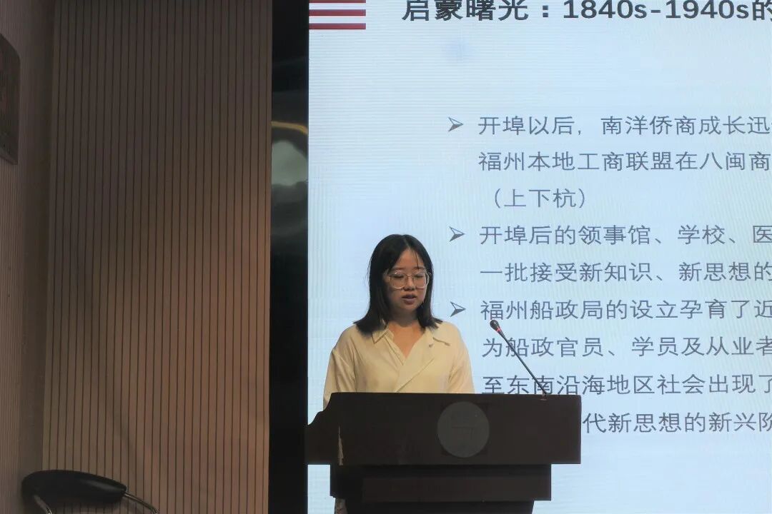 正式汇报前,张剑葳首先对本次文化遗产保护联合工作坊的概况进行了回顾总结。他介绍:本次工作坊的学员包括来自北京大学、复旦大学、中国人民大学、香港大学、澳门大学等12所院校,涵盖了文化遗产、建筑、考古、博物馆、历史、人类学、社会学、国际关系、文化产业等专业,以“启蒙曙光”为线索,构建福州城市历史叙事,尝试进行遗产价值阐释,以此为目标,开展跨学科的田野调查。